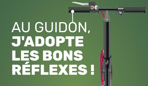 Votre trottinette doit être obligatoirement équipée d'un avertisseur sonore, de freins, de feux avant et arrière.