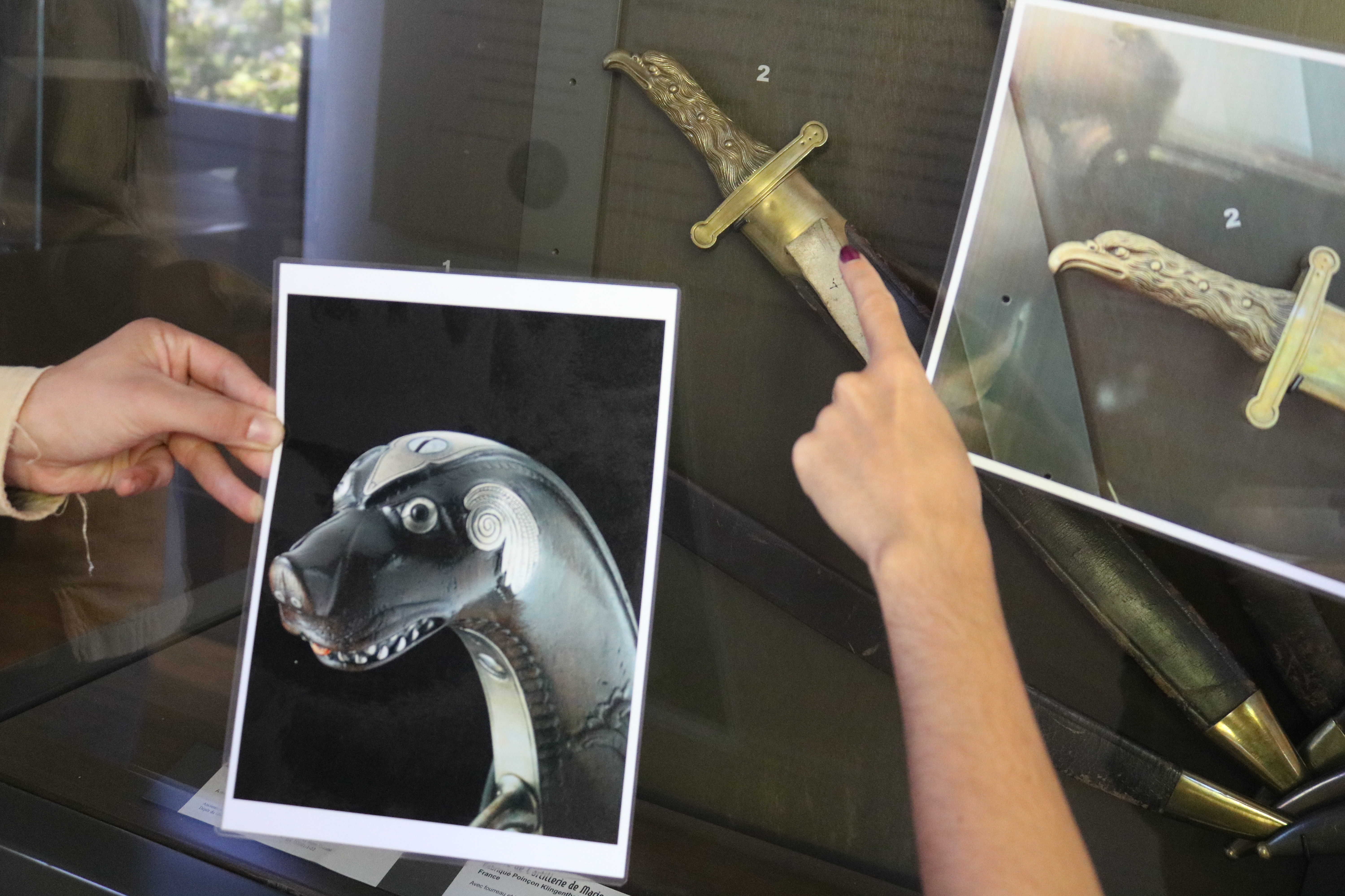 La salle des armes du XVIIIe siècle est l'occasion pour les enfants de suivre un parcours de petits jeux les entraînant du pistolet du mousquetaire au sabre de la marine.