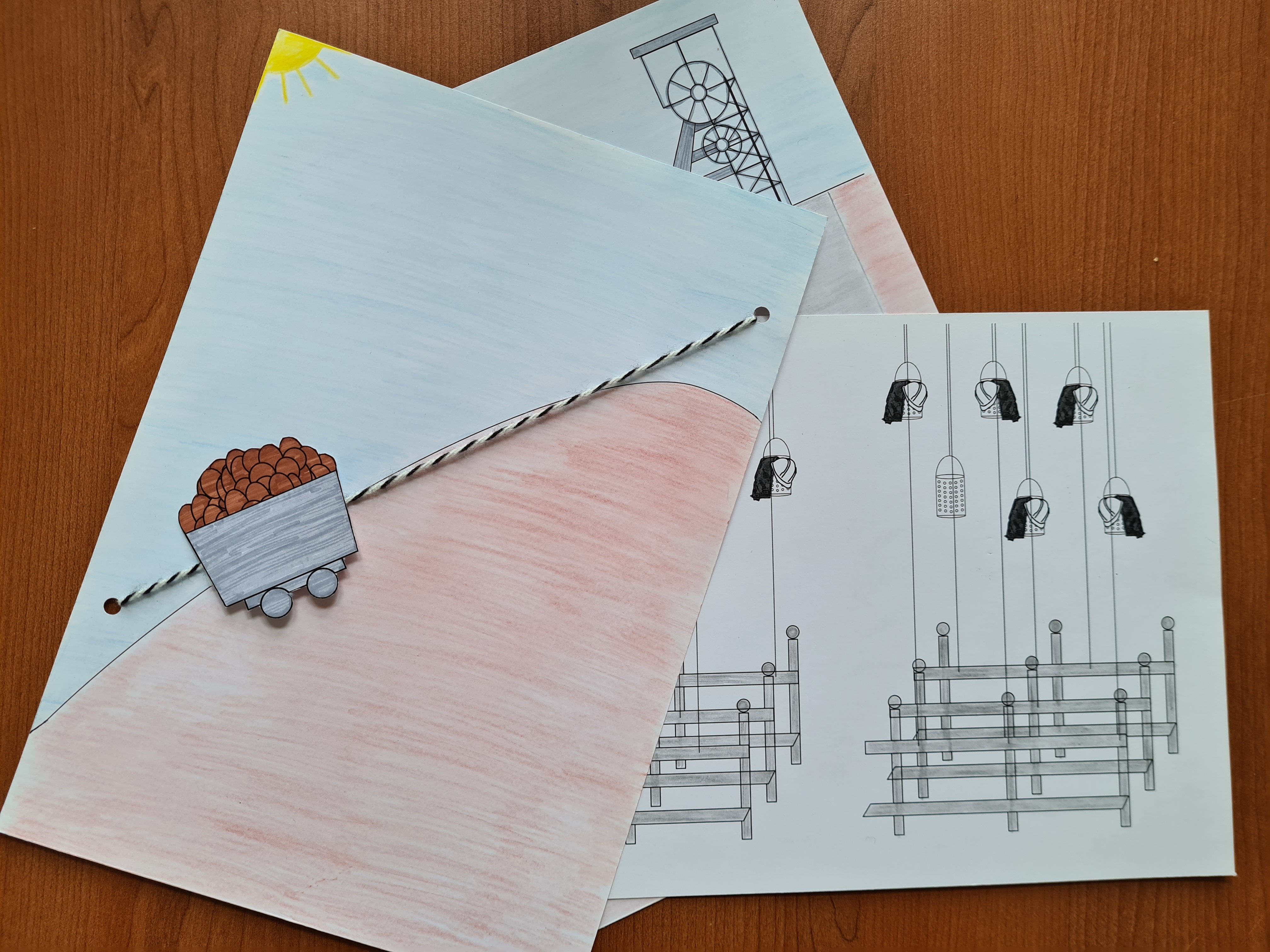 Après une visite des espaces en surface et une descente en galerie avec un médiateur, amusez-vous à dessiner votre propre mine et à faire monter et descendre vos bennes à charbon.