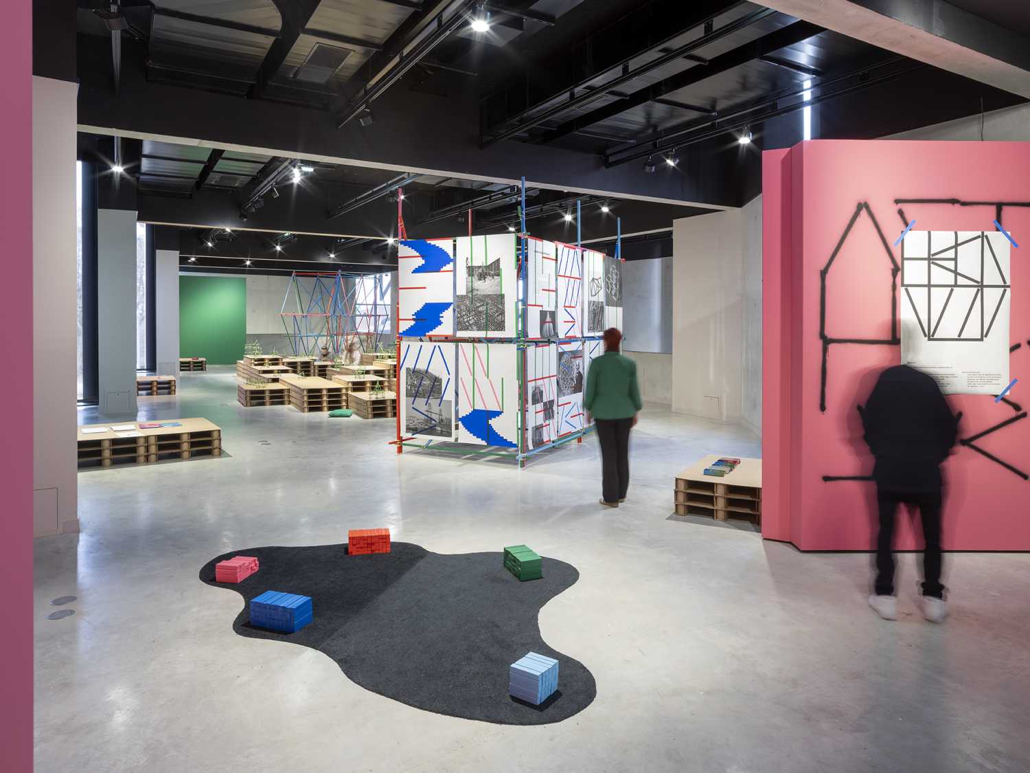 Dans cette exposition-atelier collaborative, chaque participant·e reçoit une cinquantaine de bâtons et d’élastiques pour créer une construction qui restera sur place.