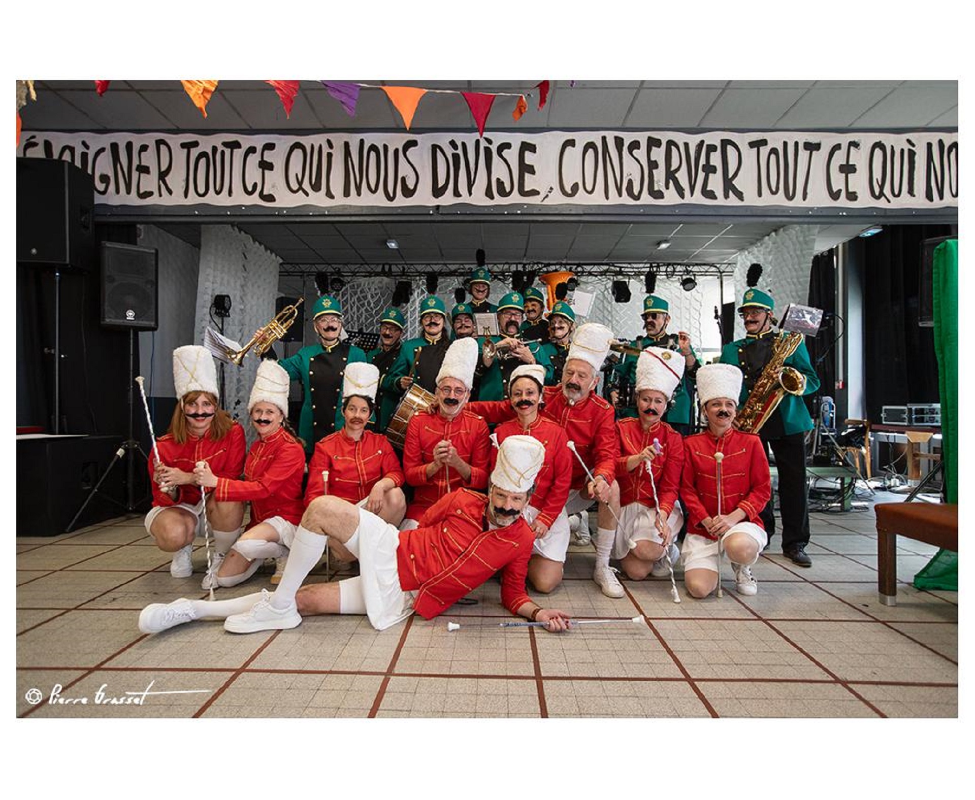 Fond avec décoration de marque FDLC - Les majorettes Moustachettes et la fanfare La tuyauterie