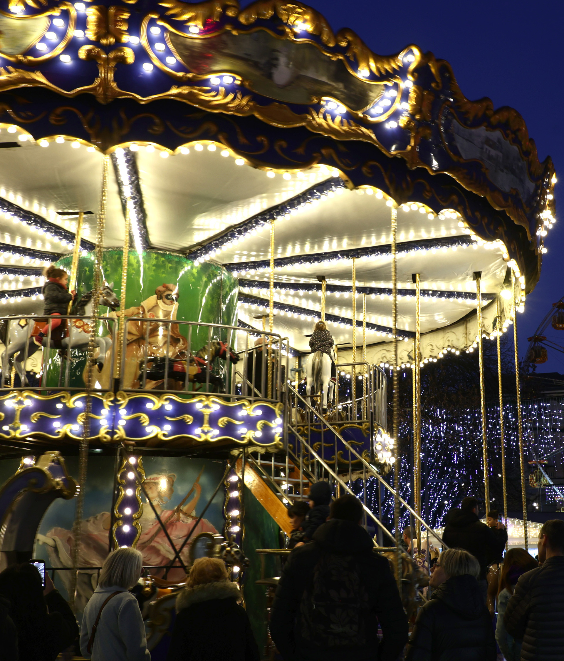 ouverture : Du 21/11 au 23/12/2025 le lundi, mardi, mercredi, jeudi et dimanche de 10h30 à 20h. Le vendredi et samedi de 10h30 à 21h30.Confortablement installés dans un carrosse ou sur la selle d’un magnifique cheval, les enfants embarquent à bord du Carrousel 1900 pour un voyage étourdissant…