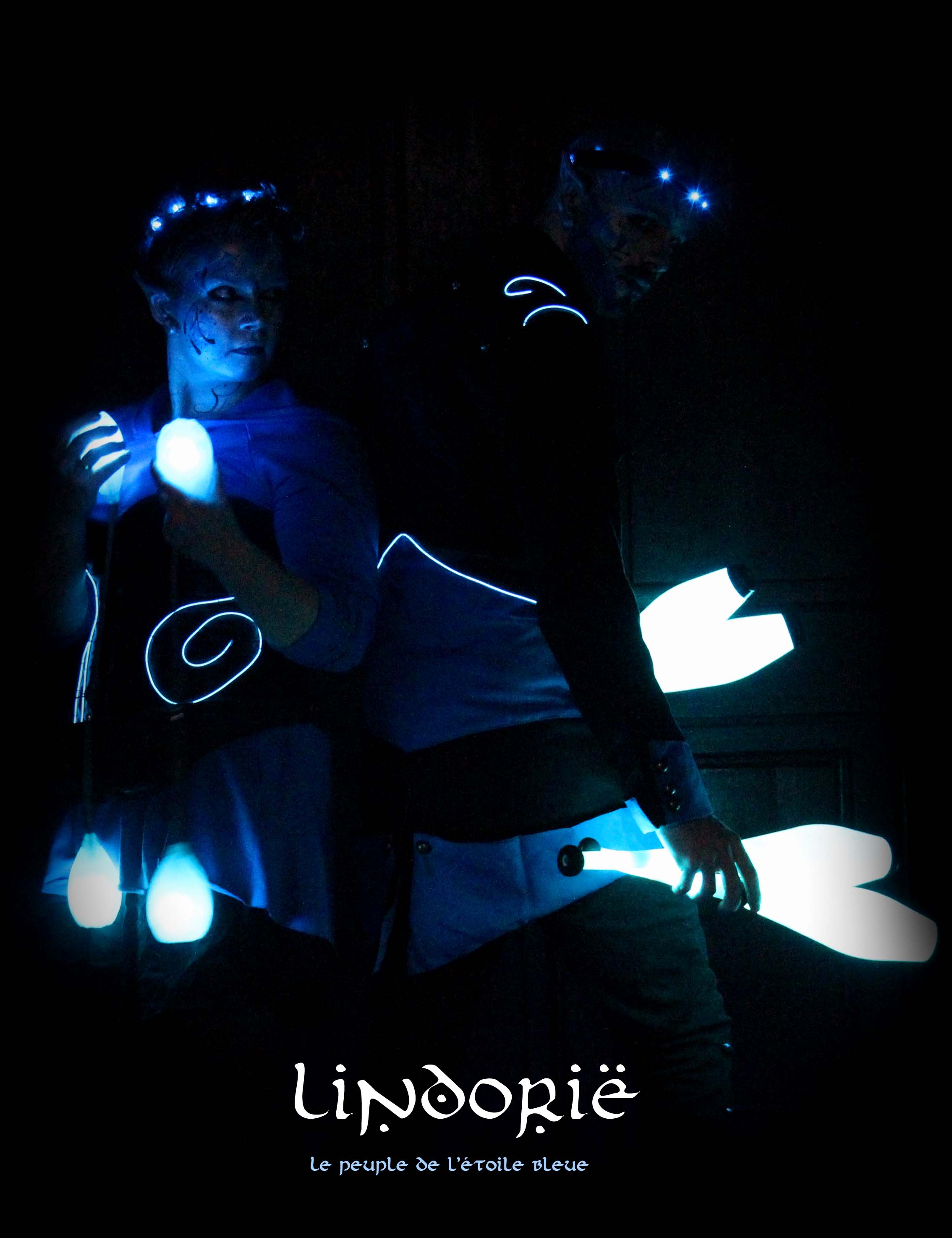 Ces silhouettes elfiques, parées de costumes lumineux, déambulent en silence et invitent le public à découvrir un univers doux et apaisant.